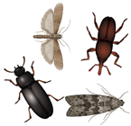 Den mest almindelige bille i kornlagre. Hunnen borer et hul i kernen, lægger æg, og larven udvikler sig derefter indeni kernen. Som følge af larvernes respiration opstår der fugtighed, varme og kraftig svampevækst i kornet. Det er generelt tydeligt at spotte angreb ved indgangs- og udgangshuller i kernen. Kornvægt og kvalitet reduceres ved kraftige angreb.