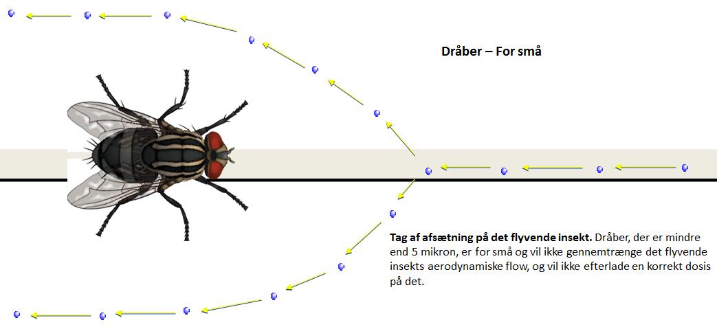 Dråber, der er under 5 mikron kommer ikke nemt i kontakt med flyvende insekter.